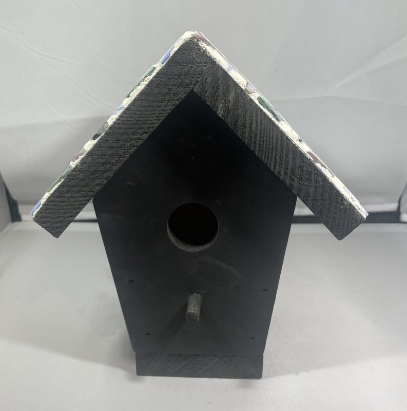 This whimsical birdhouse is a great decoration for inside or a screened in porch or deck. **Repeat exposure to weather may cause the wood to warp over time